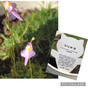食虫植物ウサギゴケ。 種類はミミカキグサ・クリオネです。 GSのお友達との会話で「ウサギゴケ可愛いよ」。と教えて貰い、「うん、知ってるよ」と答えた私。 その言葉が頭から忘れられずにいたら、なんとクリオネを見つけてしまいました。 写真でしか知らなかったお花。 実物のお花が見たくなり購入しました。 購入後植替えをして育てていたら段々とお花が咲いて来ました、1㌢程の小さなお花です。 初めて見ました🤗 口を開けて飛んでる様なお花です。。。 このクリオネは食虫植物ですが葉で虫を取る訳では無く、土中の根の所に捕虫袋が有り、小さな虫(小さな生物)が触れると捕虫袋のフタが開いて虫を吸い込みます。 腰水で育ていますが、1年で約5倍位に増えるとか。 葉が鉢の縁まで増えたら植替えをするそうですが、この鉢も段々と葉が生長して来ました。 次の植替えももう直ぐだよなぁ。。 増えると大変だと分かっているけど、白い花のウサギ苔の方も後から見つけてしまい購入してしました😅 そちらの方は又次回お花が咲いたら投稿しようかな。。。