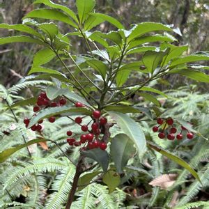 こんばんは😃🌃 杉の間に千両を植えてます 今日 正月用に千両を切って持って帰りました 去年は鳥に食べられて無くなってた🐤😵