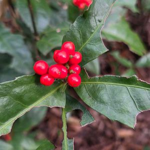 🍀🌻🪴💐🌹🌻🍀 🍀❤️千両(センリョウ)❤️🍀 💐千両の花言葉は(利益) (富) (財産) (裕福) (恵まれた才能)などです 💐千両は、センリョウ科・センリョ ウ属に分類される常緑性低木です 東アジアの比較的温暖な地域が原 産地です 💐葉色は濃くツヤがあり、フチがノ コギリの葉のようにギザギザとし ているのが特徴です 💐万両よりも少し実が小さく、ボリ ュームが少ないことから(千両)と いう名前がつけられました 💐千両は初夏の6〜7月にかけて薄 い黄緑色の目立たない花が咲き ます、千両の花には花弁がなく 花のようには見えません 💐花が終わると、10〜2月にかけて 鮮やかな赤い実が沢山付きます 🍀🌻🪴💐🌹🌻🍀