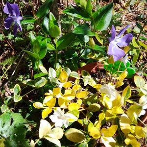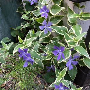 こんにちは😊 昨日は、真冬の寒さ{{ (>_<) }} 🌸と❄のステキな景色を見た方もいらっしゃるようですね😊 家のツルニチニチソウ 色も、形も好き💕 斑入りニチニチソウは、咲いてびっくり、白い花~😊って、普通なんでしょうか? 昨年頂いて、歯も白い!no~😊葉も白っぽい😀 失礼しました💦