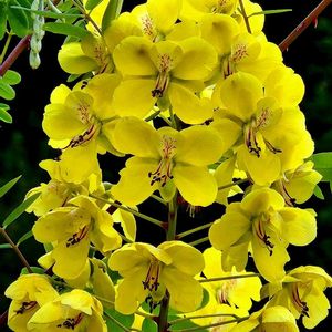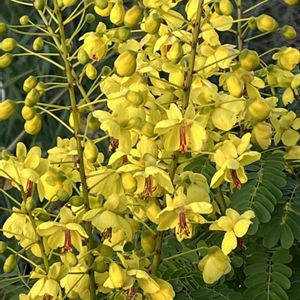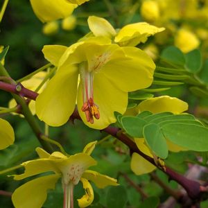 ジャケツイバラ(蛇結茨) マメ科ジャケツイバラ亜科のつる性の落葉低木 マメ科の中で唯一の木本性つる植物です 分布は主に本州(宮城・山形県以南)から沖縄まで分布 川のすぐ側とても陽当たりの良い所で咲いていました。 ②花は黄色い5弁の花で、上側の1枚だけがやや小さく赤い筋や模様があり、赤く目立っている蕊が雄蕊で10本、中央にまとまって束になっています。 雌蕊はこの中に隠れるように在るそうです。 ③は花序を上から撮影してみました。放射状に花茎をだしてますね!そして緑色の蕾がまだ在ります。 ④ 茎や枝に鉤状の鋭いトゲが多く、枝が他の木に絡み合って高く高く上方へと絡み上がっていました。 そんな姿を⑤に入れてみました。 そして昨年の果実もまだ沢山付いていたので一緒にコラージュで入れてみました。 ⚠️この種子はおよそ1㌢くらい。 有毒成分が含まれており、誤食すると嘔吐を繰り返すなどの中毒症状を引き起こすことがあるのでご注意を この大きなジャケツイバラから少し先のお山の中で沢山幼木を見つけています。高木が茂って上を見上げてもこの鮮やかな色のジャケツイバラの花は見つかりませんでしたが、黄色い花弁が落ちていたので、花を咲かせた木がある筈です。以前ジャケツイバラの冬芽葉痕を撮影したのは、ここの幼木でした 咲き始めて間もない綺麗な状態のジャケツイバラに出逢えて🙌 とても綺麗でしたよ〜🥰 📷 2025/5/8 越生町