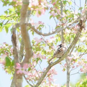 ハナミズキとスズメ あしかがフラワーパーク 2018.04.26撮影(デジイチ)