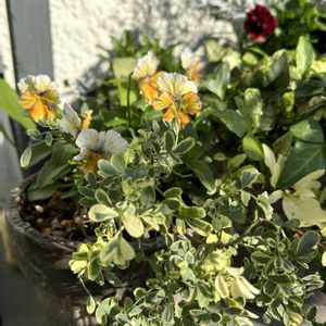 ちょっぴりおフレンチ BLACK × Silver Green 寄せ植え ①まずは正面から📸 黒とシルバーグリーンのみを寄せて。シックでモダンな感じにと😉リーフの使い方もっと生かしたかった~😂💦 まだ全然馴染んでいなくて…🙇♀️💦 ・ビオラ ブラックデライト ・プラチーナ(カロケファルス) ・ロータス クレティクス From ネットショップ tef*tef *さん ・コロニラ バレンティナ・バエリガータ From夏越し ②ブラックデライトアップ📸 昨年育てて、微妙に色が変化するこのビオラが気に入りました🖤🤗たくさん植えて咲き溢れる姿がみたかったんです👀咲き乱れ中なぅ(笑) ③ロータス クレティクス、コロニラ バレンティナ・バエリガータ📸 右手に出ているシルバーグリーンの枝(茎)がクレティクス🌿横に寝てしまっています😅 バエリガータは、3月お迎えしてお気に入りに🥰夏越しして、お一人様で待機していました。何となく元の方は木質化気味で直線的になってきて扱いにくかったです。 リーフに目がないこの頃🩷🤗 ④全体~鉢も入れて📸 鉢の色、もう少しグレーにペイント🖌️🎨予定です。 最近は、気温が上がって来るのが、お昼ごろ🌞 2時半過ぎたら陰って来ますし😶🌫️🐧庭活できるのは正味2、3時間です😅⤵ 今日もまた、寒空の下空いた鉢の洗い物🌀👕植物たちの冬越し剪定など、地味な作業をして、何とか寄せ植えを1つ🪴🧤💨🤗🆗 寒さに強い子たちは、まだ軒下で外気に当て鍛練中です。凍結や積雪になったら、風除室に入れようと思っています。 悩みどころは、室内組と小屋組の線引きです。室内組は増やしたくないけど、小屋だと水やりを忘れがち…プラマイありますね💦
