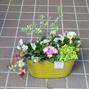 早いもので、あと5日ですね〜😅 桐生ファーム✖️花日和のコラボ、アイクルールの寄せ植えです☺️ 黄色のアイクルールが可愛らしくて、ピンクのアリッサム、葉牡丹、コロニラ、セリフラミンゴなどが入っています☺️ 今日は寒いですね〜😊 暖かくしてお過ごしください☺️