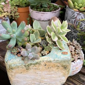 🪴 あがのへ🚙💨出荷完了✅ おかげさまでリピート🔁様もいるようでありがたい🐟😆🙏🎶 どうぞ手に取っていただけたら嬉しい限りです☺️💕 ✨ # @aganomichinoeki #セダム #寄せ植え #葉挿しっ子 #センペルビブム #モルタル造形 #モルタル鉢 #ステンシル #デコパージュ #ビーズ