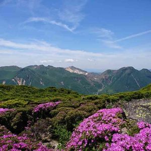 くじゅう大船山(たいせんざん) ミヤマキリシマ 見頃を迎えて青空と➰「半分、青い。」😁 2018/6/2 大分県 くじゅう