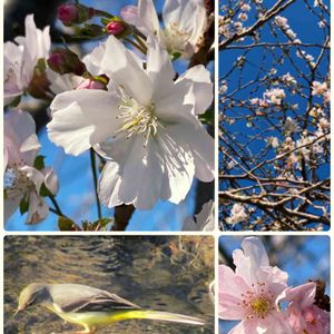 川散歩🚶♀️ 公園の十月桜🌸 ハクセキレイかとカメラを覗いたら黄色い❣️ キセキレイと初めて会えました💛