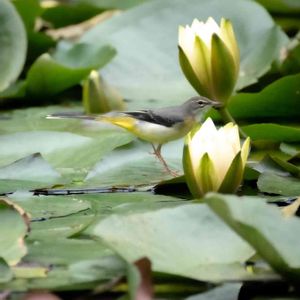 水曜日の水辺の便りです。広いスイレンの池には、まだ花も残っていますが、夕刻のため蕾で残念!キセキレイはこのスイレンのグランドがお食事処のようでした。 2021.11.11.