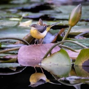 スイレンがまだわずかながら咲いていた新宿御苑南地。キセキレイがせわしく走り回っていました。2021.10.25.
