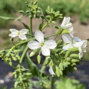 大根の花💠 昨年秋に蒔いた残りの種を3月に蒔きました。夏大根は辛いからと思い込んでいましたので、初めてこの時期に収穫となりました。先週は暑かったので1週間ぶりにいくと花💠が咲いている😲 今日は暑いけど、おでんで頂きます😊