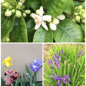 ダイダイの花 う〜んいい香り❣️ 柑橘類の香りは大好きです❤️ ジャーマンアイリスの3色植え 菖蒲の紫が可愛いです