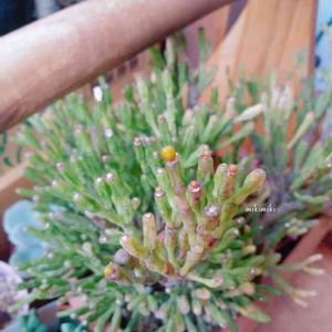 断水でだいぶ縮んでシワシワになってしまいました😥 が、花芽が出てきましたよ😍楽しみ。