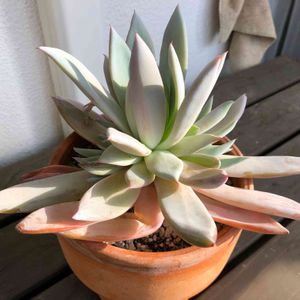 我が家のオブツーサくん❣️ ぷりぷり感が無くなってたオブツーサくん❣️ 投稿してから外に出してお日様に当ててたら飛んで行ったので、根っこが張ってないのかな?と思い、一度抜いて、お水につけて根っこを出し、植え替えました🌵 極力水やりをするようにして、結構湿ってる感じを維持してきたのだけど、、 あれから2ヶ月、、 どうでしょう!? 美しいオブツーサとはいえないけど、なんかぷりぷり感が少し戻ってきた!?