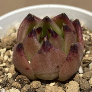 購入記録 8月26日 エケベリア エボニー×ラウリンゼ 肉厚でずんぐりした葉にラウリンゼ、表面の質感や色味はエボニーを感じさせます。 うーん魅力的! 多肉の里産です。
