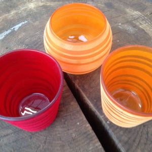 植木鉢使用のグラス💖✨ 一個60円(^-^)/オレンジ色が 大好きなので買っちゃいました 家計簿には、無駄遣いって正直 に書きます(≧∇≦)