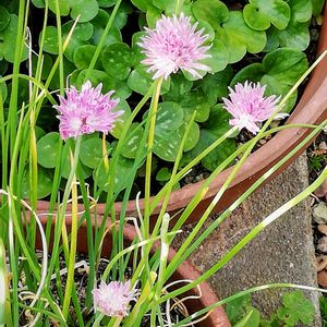 チャイブ(ハーブ) 西洋のねぎなので、葉っぱは食べられるそうですが、まだ食べたことはありません 家ではお花を観るために植えています お花はピンク💗でかわいいですネ♡♪