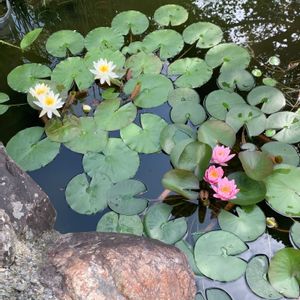 朝夕が涼しくなってきたら池の睡蓮と浅沙がまた咲いてきました( ´ ▽ ` ) 蓮のつぼみも三つあります。