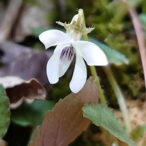 おはようございます☀️ 御岳山に咲いていたスミレ 沢沿いの湿った所に咲いていました。 フモトスミレに似た白花 萼片が反り返り毛がある。 コミヤマスミレ💚💚 ちょっとピンぼけになってしまいましたが、本当は、もっとずっ〜と可愛いチャーミングなスミレさんでした。