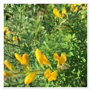 2年めで鉢植えなのでこれの親木のように咲き乱れはしないが、癒される程度に咲いているエニシダ