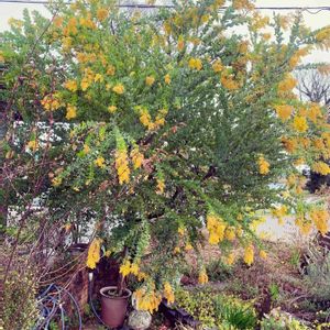 今日はお友達と米粉のパン屋さんへ🍞🎵 お庭が可愛くて見せてもらいました。 とても立派なパールアカシアが😍✨よーーーく見てると…とっても小さな植木鉢に入ってます🤭!びっくりしました。こんな少しの土でもこんな立派に育つんだなぁ…