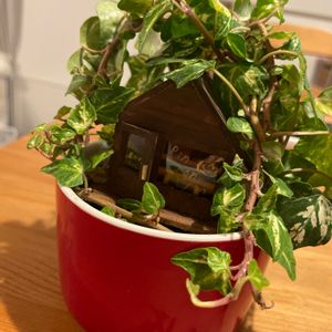 電気💡点けりゃよかったか? ピン・ポン・パン🍞店 一年計画で、ココまでワサワサに。 強制的にではなく、枝と枝を絡ませたり、 屋根に引っ掛けたり。一葉も切って無い。 アリエッティの家みたくしたかったんだぁ