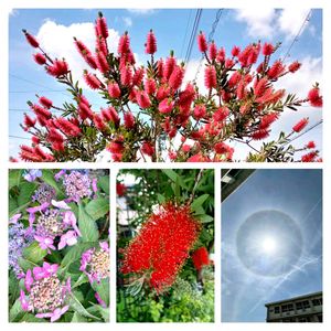 ブラシの木 左下から ヤマアジサイ〜カラフルでキレイ (*´∀`*) ブラシのアップ👀 先日のハロ ちょっと引いて写したこっちのほうが迫力あるからもう一度アップしてみました😀