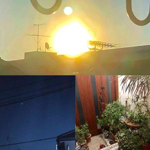 空を見上げたら(꒪ȏ꒪) 太陽の周りにリングが‥! ちょっと虹色した光の輪は ハロ現象、日暈(ひがさ)というものらしいです。 はじめて見ました♡ お庭のお花たちも見上げていますよ・*:..。o○☼*゚