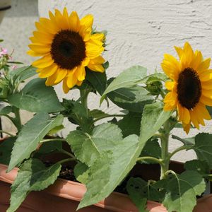 ミニヒマワリ スマイルラッシュ いよいよ咲き始めました🤗 蕾もいっぱい😊 スマイルラッシュの名の通り、笑顔が殺到するのも時間の問題ですな😁 種から育てて、いくつかは職場の同僚にあげたけど、9本が植わってます。 プラス2本、前回投稿した赤ヒマワリのルビー🔴 計11本のヒマワリが夏のメインディッシュとなりそうです✌️