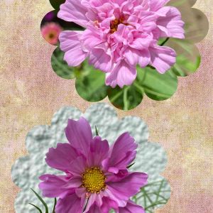 種からのコスモスが 咲き始めました🌸 両方ともダブルクリックの はずなのにこの違い😅 でも大好きなコスモスだから いいわ💕