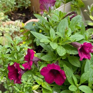 種からのペチュニアF1 ベルベットパープル これは同じ種からなのに 性質も色も全然違う🧐 ⬇️のはサフィニアの様に 切っても切っても長く伸びてきます🌿 F1なのに〜😥