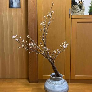 今朝は雪が降りました 早く外でお花見したいなぁ🌸 東海桜の格花 一昨日のお稽古作品です