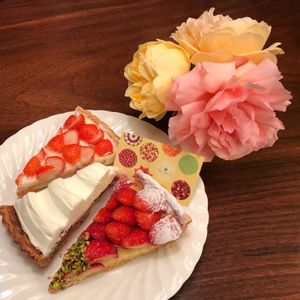 先日誕生日だったので、次女が美味しいケーキを買ってきてくれました🍰ありがとう💕 カットしたバラはグラハムトーマス、アプリコットキャンディ🌹