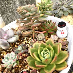 ぶっこみ鉢に娘が雪だるまを入れてくれました。 通勤途中に百円で売っていた多肉をぶっこんだ鉢。 種類も不明だけど元気そう。 春には土が見えなくなるくらい元気になってくれるといいなぁ