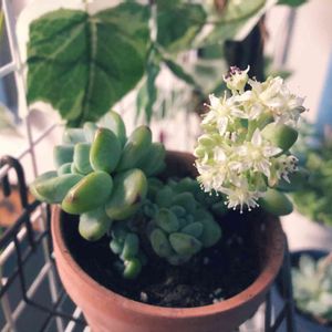 可愛がっている多肉が初めて花を咲かせてくれました♪ ロッティの花は白いんですね。なんと美しい。