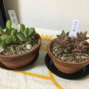 息子が多肉植物に目覚め、いただいた株を分けてさらに植えました😅 育ちますように🙏