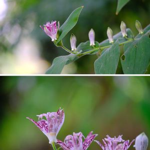 日曜の撮影です。 タイワンホトトギスと異なり、花が直線的に並びます。