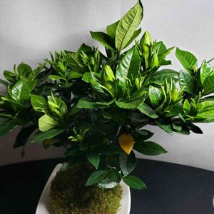クチナシの苔玉です。 知人が母の日の贈り物とのことで作りました。 あと2週間、 元気で渡せるようにお世話しなければ😳