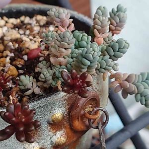 今日はカルテ№のある子から外れて、「セダムをもっと楽しもう!①」と題して育ててるテラコッタのプランターの一部分を💕ええ色になってますな🤩 この鉢のメンバーはコーラルカーペットとアルブムとパリダムの3品種を入れてるんですけど、パリダムに占領されてます🤣 粒々セダムは、もりもりの単品植えも可愛いし、寄せ植えでもイイ仕事をしてくれるんで殖える時にはグイッと殖やしときたいんですけど、如何せん置き場所がね😅💦 そこで、もっと素敵に可愛く育ててみたい、楽しく殖やして置き場所の問題も解決したいと思い立って、昨年の3/23から試みている鉢☝️春の手入れで余剰になった部分や捨ててしまうような部分を拾い集めて、環境をしっかり整えた鉢にばら蒔いて、最大限放ったらかしでどんなふうに育っていくのかを実験中🤭🎶 置き場所は、梅雨も真夏もずっと日向の露天(会社に居候)で、10月に新居に連れて帰ってからもずっと露天👌 土は、ふるいにかけた使い古しの多肉用土ですけど、これ系セダムは深さは不要と思うんで鉢口から7~8cmの高さまでは軽石で上げ底してます☝️元肥も追肥も虫害予防も無し、水やりも基本的には雨露に頼ってます🤭けれども「晴れの国」なんで雨が少ない!たまにシャワーで水やりしてます(笑) もうすぐ一年経つんですけど「梅雨の時期だけ軒下」に入れることでおそらくは完璧👍(もう1鉢ある「セダムをもっと楽しもう!②」の方はパープルヘイズとダシフィルムが梅雨で消えたんで💦) 今年はローコスト&ローメンテナンスを抱負に掲げてるんで、時間にゆとりがあったら他のセダムでも実験してみたいと思ってます✌😆 「たっちんのセダム鉢」タブをタップでこの鉢の生長記録のみどりのまとめが簡単に見れます😊🎵