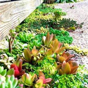 枕木の間のセダムちゃん達 紅葉もしてくれて可愛いのですが 雨がよく降るこの地域では 綺麗に広がることが難しそう 土も少ないかな 去年の夏、梅雨と猛暑で死にかけのダシフィルムは造園屋さんに相談したら植え替えをして下さいました。 コーラルカーペットは強いけど ダシフィルムやミルクゥージなど小さいものは雨をため込んで蒸れやすいです 去年ポロポロと落ちて救出したダシフィルムリファレンスはムチムチ育ってくれてるので🐷 ごっそり鉢に植えて軒下でモリモリさせようかなと考え中です☀️
