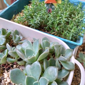 可愛いセダムたちの寄せ植えです💞 コーラルカーペット、斑入りパリダム、、細葉オオゴンマンネングサなどです☺️