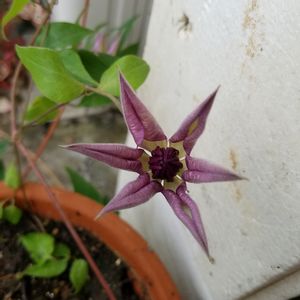 んちゃ🐧 フロリダ系のクレマチス フォンドメモリーが咲きました。 ホントに風車のようですね。
