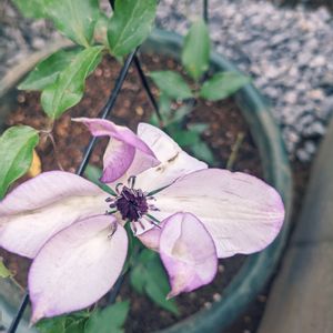ネットで一目惚れして2年悩んだ末 ついに我が家にきたクレマチス 初咲きです!思ってたとおりのお色で素敵😊