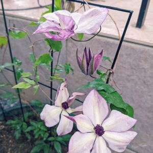 我が家のクレマチス第1号は去年はピコティと投稿してましたが皆さんの投稿やらネットを見ているとフォンドメモリーかなと😜 これが最初のお花ではありませんがお花がみんな我が家に背を向けて咲いてしまってやっとこっちを向きました😅 アーチにバラと一緒に絡ませてますが大きな花がヒラヒラしてしまって仕立て方を変えた方がいいかなぁ