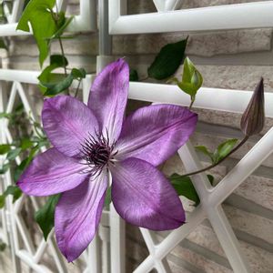 一年苗で迎えたフォンドメモリーさん 伸びてきたので、フェンスのそばに置いておいたら、蕾がついたので、咲かしちゃいました めちゃくちゃ好みです。玄関横の特等席を飾ってもらう計画です あー、でもクレマチスって冬、超汚ないよね。みなさん、冬はどうしてるんでしょう