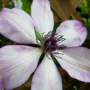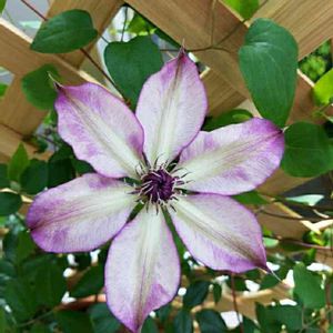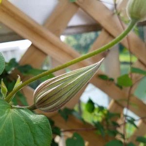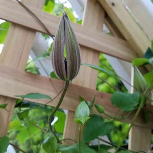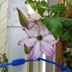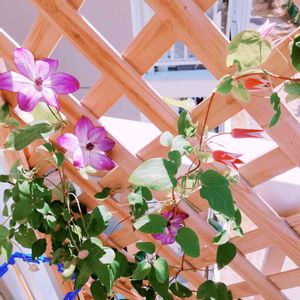 今年のクレマチス フォンドメモリーの一番さん。 誘引の時ちょっと折らしてしまったけど無事咲いてくれました~🙆 つぼみのまま枯れてしまうかも…と思っていたからあまり見ないようにしてたのにいつの間にか 今日咲いてました。 そんな理由からか 去年の子達と全く色が違う…🤔 なんでだろう。 この色は見たこと無いからそれはそれで素敵なんだけど…