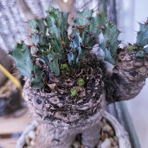 ユーフォルビア クラビゲラさん。 この品種?それとも個体? 根の張りがイマイチ悪い(´△`) これよりだいぶ後に実生始めたギラウミニアナはお外デビュー安定してるがクラビゲラは一日でフニャフニャになって水切れ気味になる( ̄▽ ̄;) 成長もかなり遅いし厄介な子達に手を出してしまった( ̄▽ ̄;)