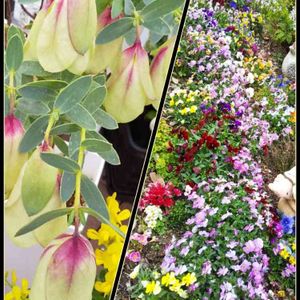 田園の中にある素敵な花屋さんにて ④―3 とても種類が多く初めて見る花も多いです 🌱ピメレア ピソディス ウエディングベル🌱 西オ―ストラリア産 赤いガクは花を寒さから守っているのだそうです 🌱ビオラ🌱の地植も綺麗でした