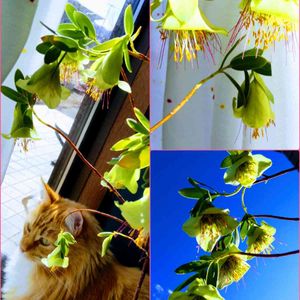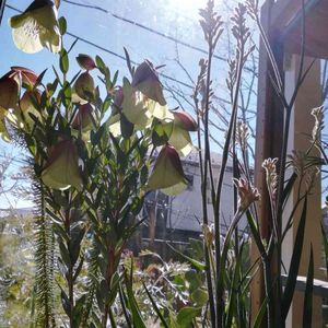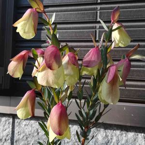 #ピメレア #フィソディス (#ピソディス )。 ベルのような🔔珍しい花の形をしています😊。 細身の枝に 大きな花はインパクト大です! 。 寒さに強いですが、強い霜には当てないように。軒下あたりがオススメ! 毎年春先頃に花を咲かせます🌸。 。 花が終わったら、植え替えを 育てやすく花がつきやすくなります。