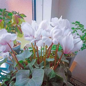 玄関の花🌸 シクラメンはここで2年目 シルバーリーフが美しいので花がない夏も置きっぱなしです☺
