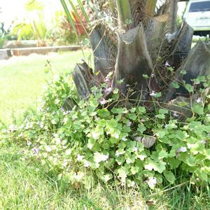 甘い香りに誘われて🐝🐝 今年もココスヤシの実が熟しました〜 根元には、昨年の種がチラホラ発芽🌱